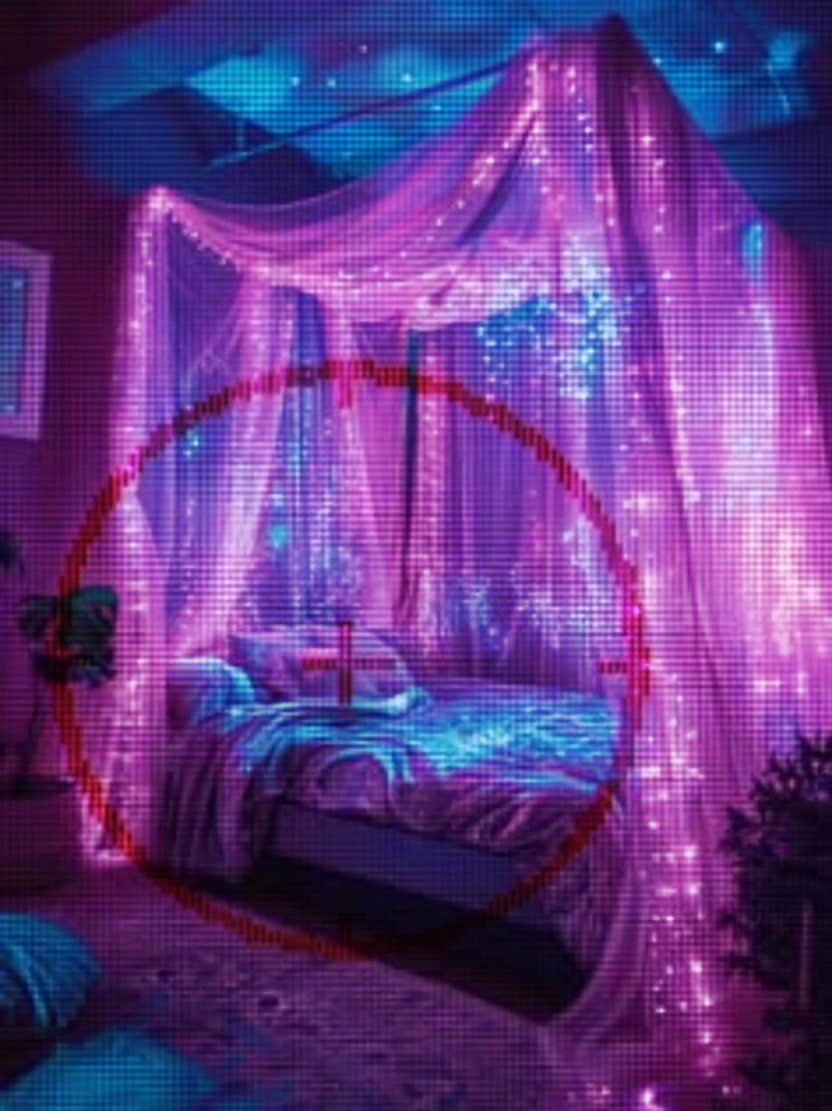 Dans le cône de la lampe